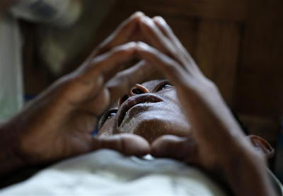 A man afflicted with HIV after engaging in illegal blood-selling rests at his home in Zhongtong town of Lixin county, Anhui province